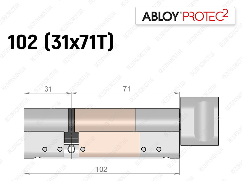 Циліндр ABLOY PROTEC-2 102 мм (31x71T), з тумблером