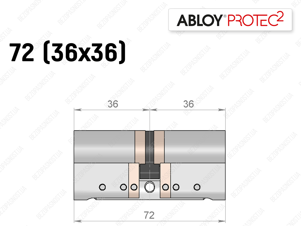 Циліндр ABLOY PROTEC-2 72 мм (36x36), ключ-ключ