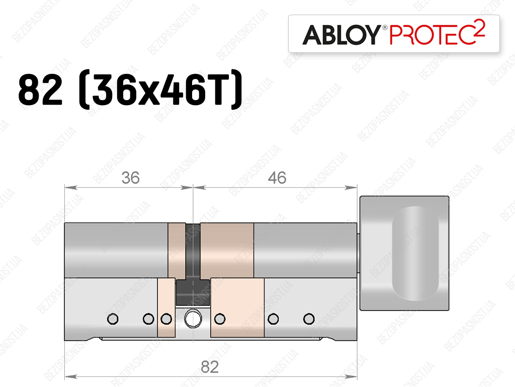 Цилиндр ABLOY PROTEC-2 82 мм (36x46T), с тумблером