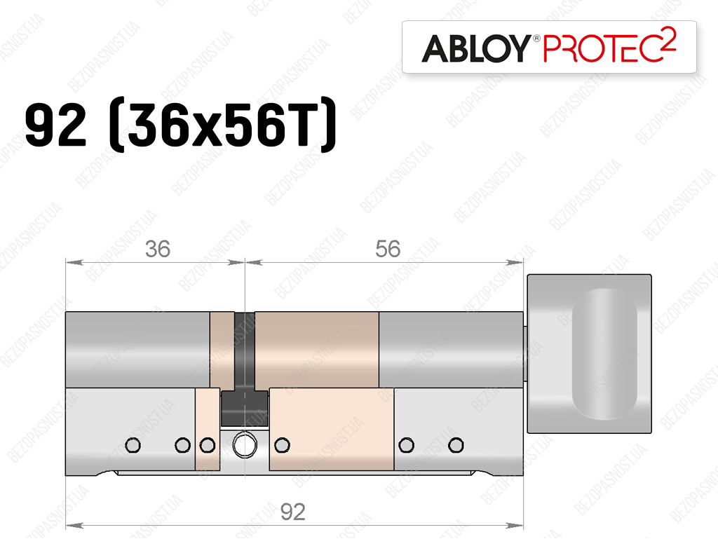 Цилиндр ABLOY PROTEC-2 92 мм (36x56T), с тумблером