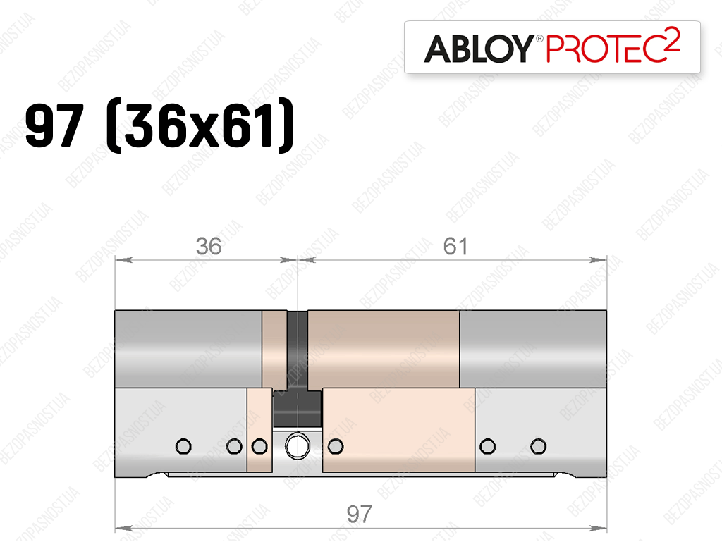 Циліндр ABLOY PROTEC-2 97 мм (36x61), ключ-ключ