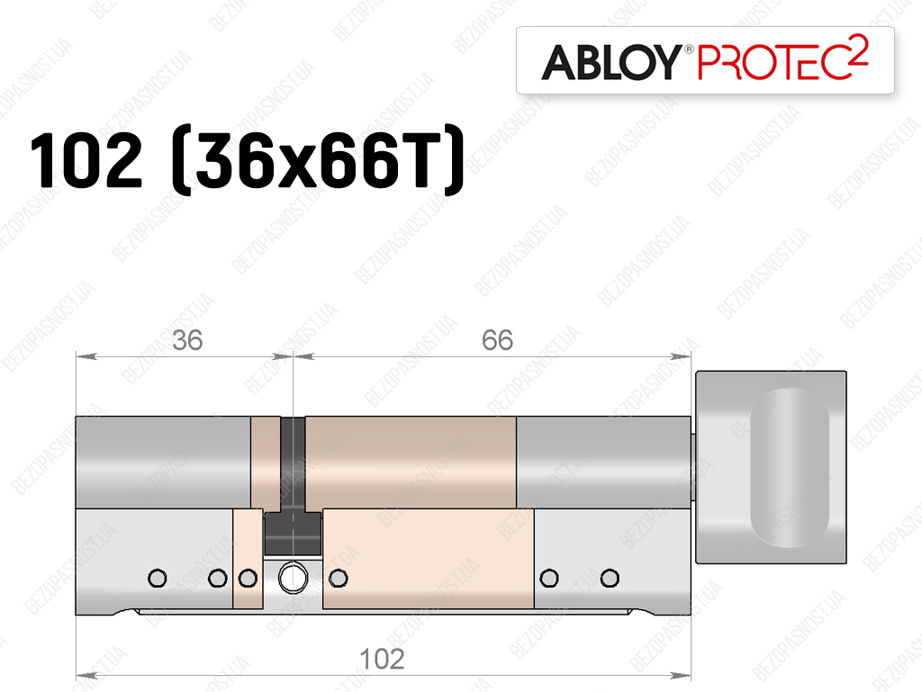 Циліндр ABLOY PROTEC-2 102 мм (36x66T), з тумблером