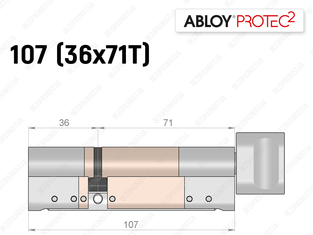 Циліндр ABLOY PROTEC-2 107 мм (36x71T), з тумблером