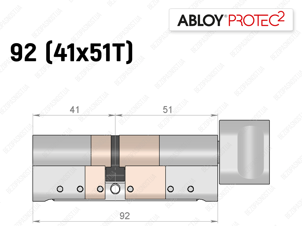 Цилиндр ABLOY PROTEC-2 92 мм (41x51T), с тумблером