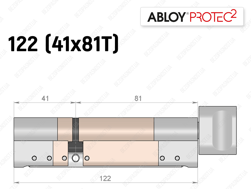 Цилиндр ABLOY PROTEC-2 122 мм (41x81T), с тумблером