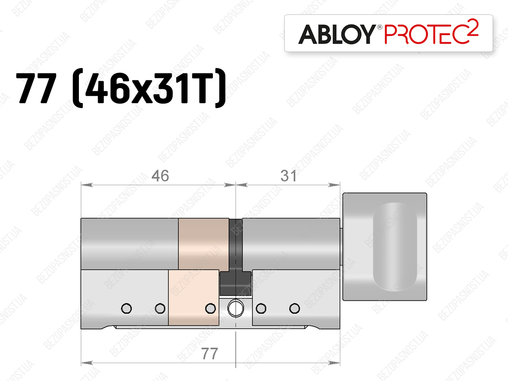 Цилиндр ABLOY PROTEC-2 77 мм (46x31T), с тумблером