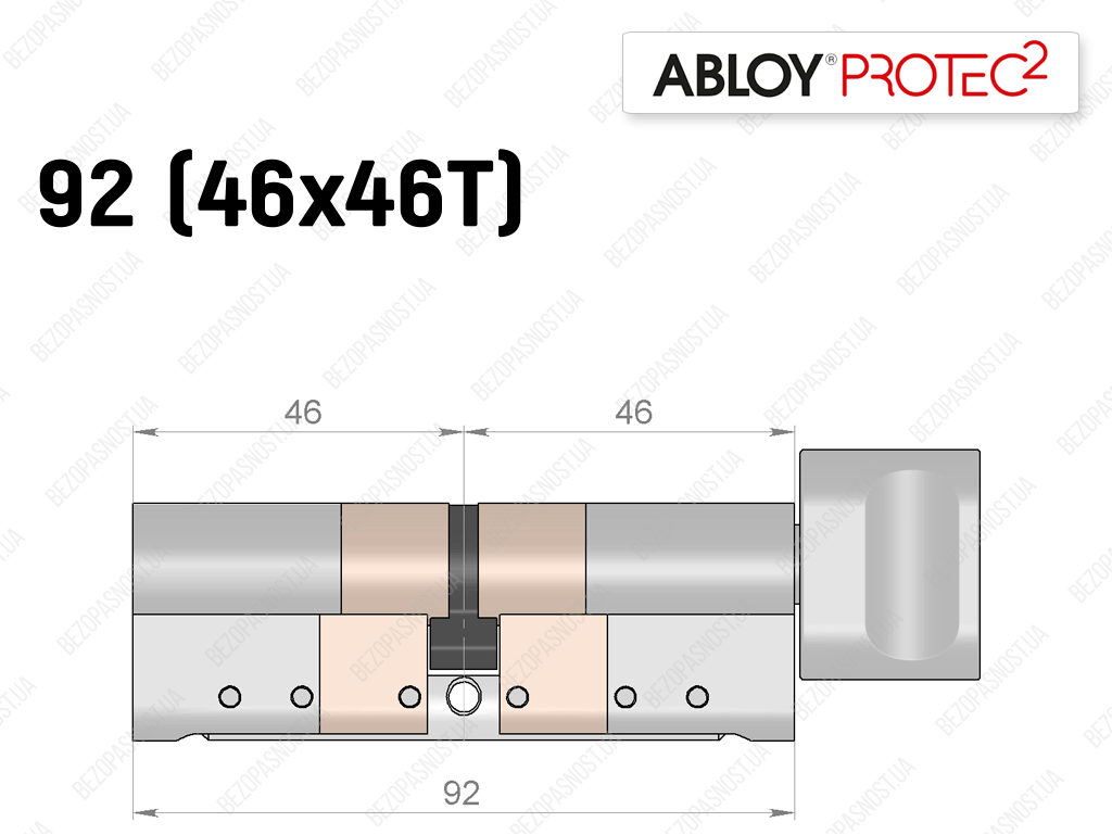 Цилиндр ABLOY PROTEC-2 92 мм (46x46T), с тумблером