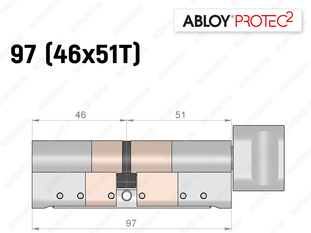 Цилиндр ABLOY PROTEC-2 97 мм (46x51T), с тумблером