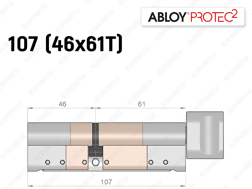 Циліндр ABLOY PROTEC-2 107 мм (46x61T), з тумблером