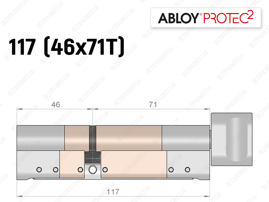 Циліндр ABLOY PROTEC-2 117 мм (46x71T), з тумблером