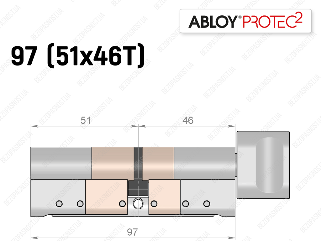 Циліндр ABLOY PROTEC-2 97 мм (51x46T), з тумблером