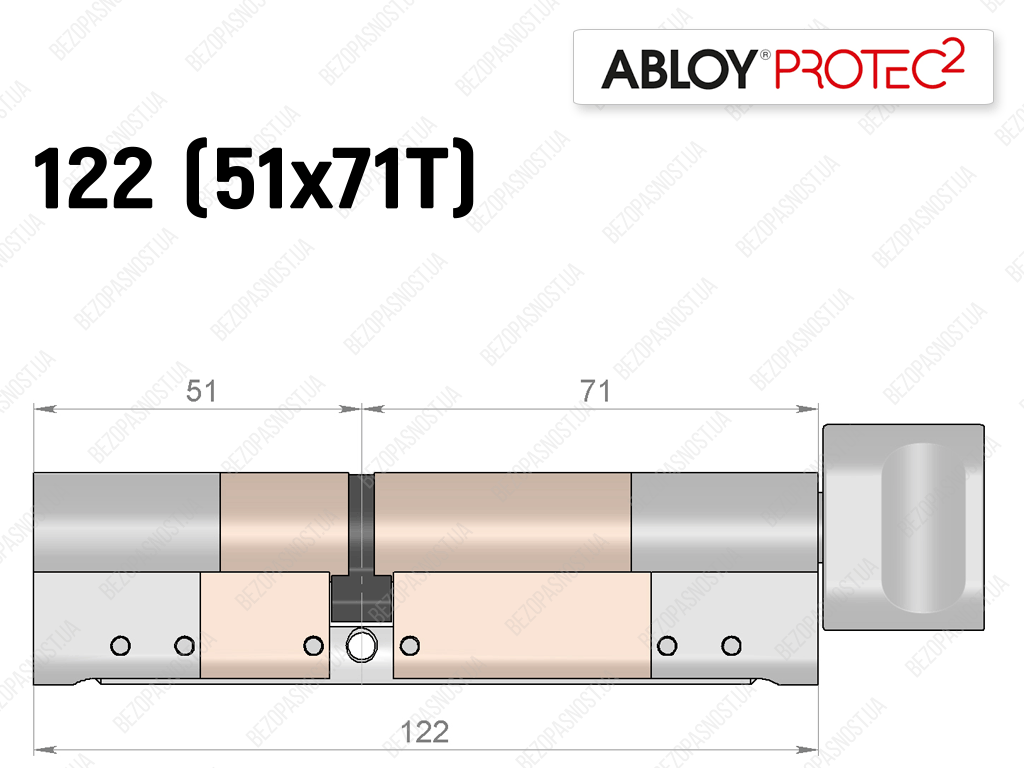 Цилиндр ABLOY PROTEC-2 122 мм (51x71T), с тумблером