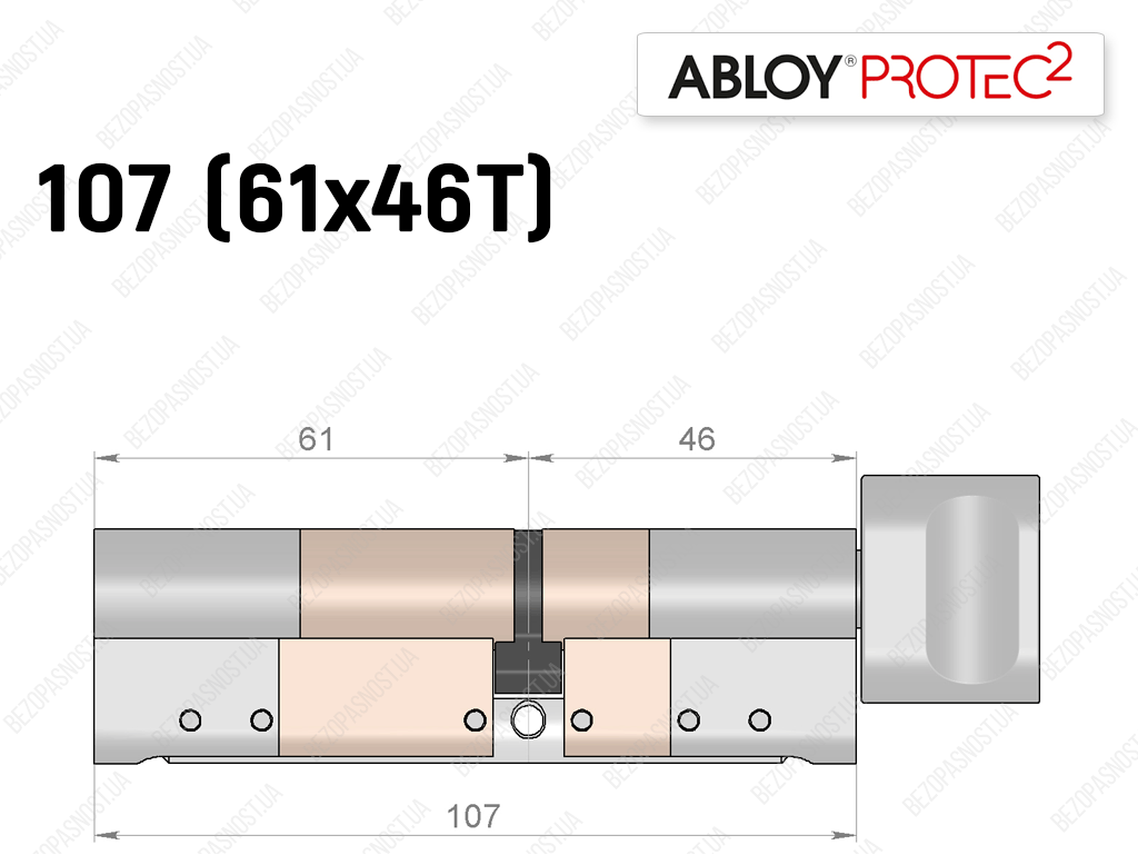 Циліндр ABLOY PROTEC-2 107 мм (61x46T), з тумблером