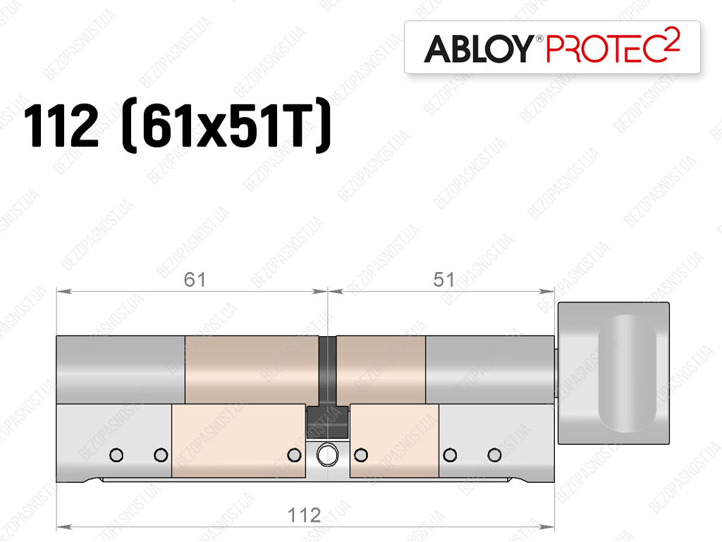 Цилиндр ABLOY PROTEC-2 112 мм (61x51T), с тумблером