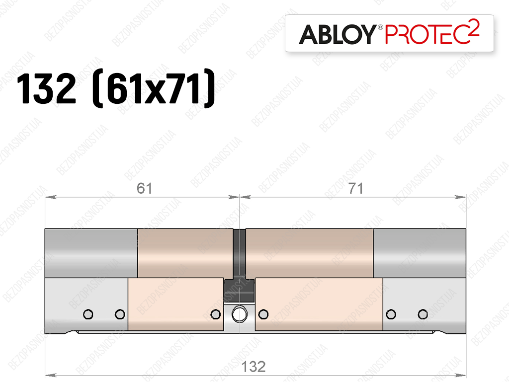 Циліндр ABLOY PROTEC-2 132 мм (61x71), ключ-ключ
