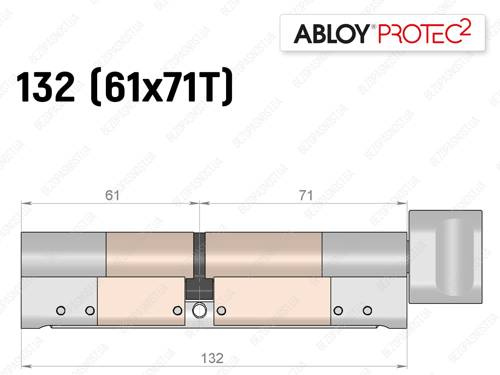 Циліндр ABLOY PROTEC-2 132 мм (61x71T), з тумблером