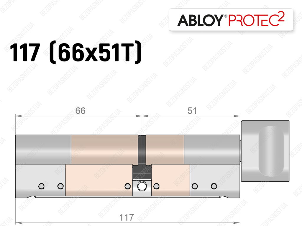 Цилиндр ABLOY PROTEC-2 117 мм (66x51T), с тумблером