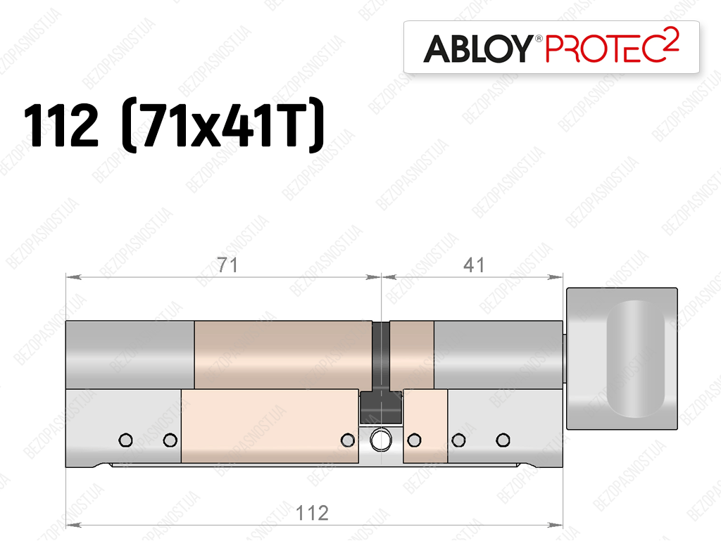 Циліндр ABLOY PROTEC-2 112 мм (71x41T), з тумблером