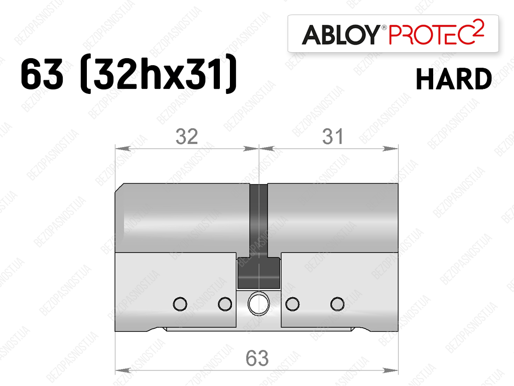 Цилиндр ABLOY PROTEC-2 HARD 63 мм (32Hx31), ключ-ключ