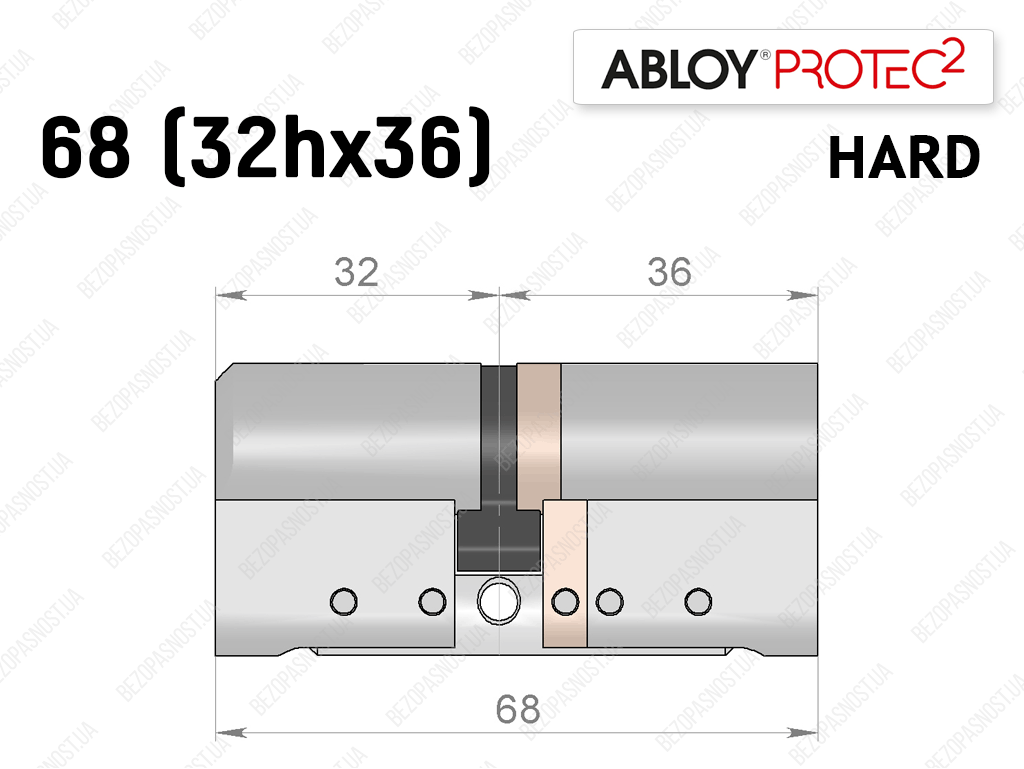 Циліндр ABLOY PROTEC-2 HARD 68 мм (32Hx36), ключ-ключ