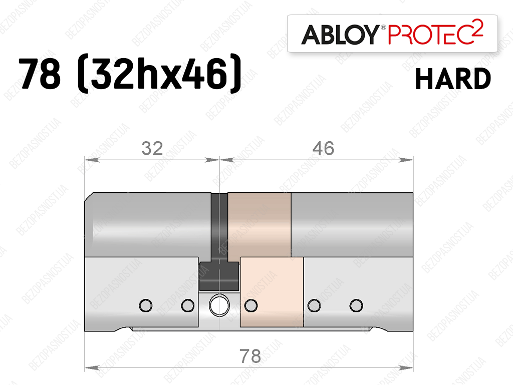 Цилиндр ABLOY PROTEC-2 HARD 78 мм (32Hx46), ключ-ключ