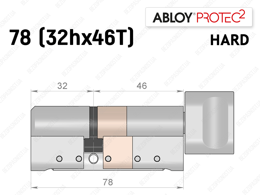 Цилиндр ABLOY PROTEC-2 HARD 78 мм (32Hx46T), с тумблером