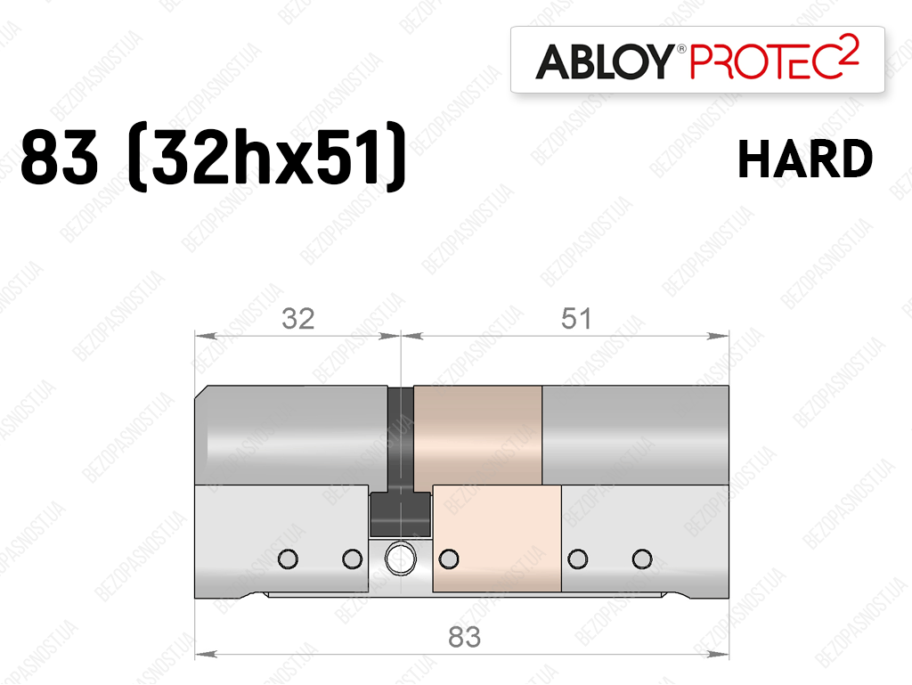 Цилиндр ABLOY PROTEC-2 HARD 83 мм (32Hx51), ключ-ключ