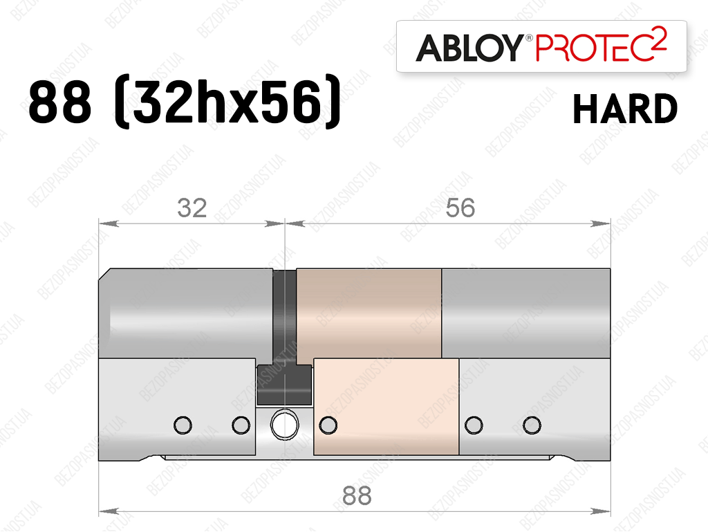 Цилиндр ABLOY PROTEC-2 HARD 88 мм (32Hx56), ключ-ключ