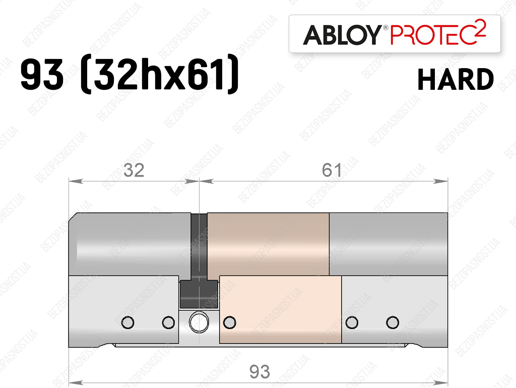 Цилиндр ABLOY PROTEC-2 HARD 93 мм (32Hx61), ключ-ключ
