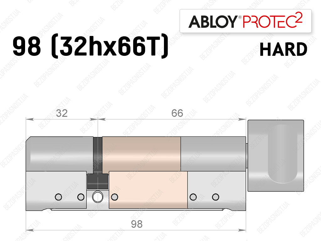 Цилиндр ABLOY PROTEC-2 HARD 98 мм (32Hx66T), с тумблером