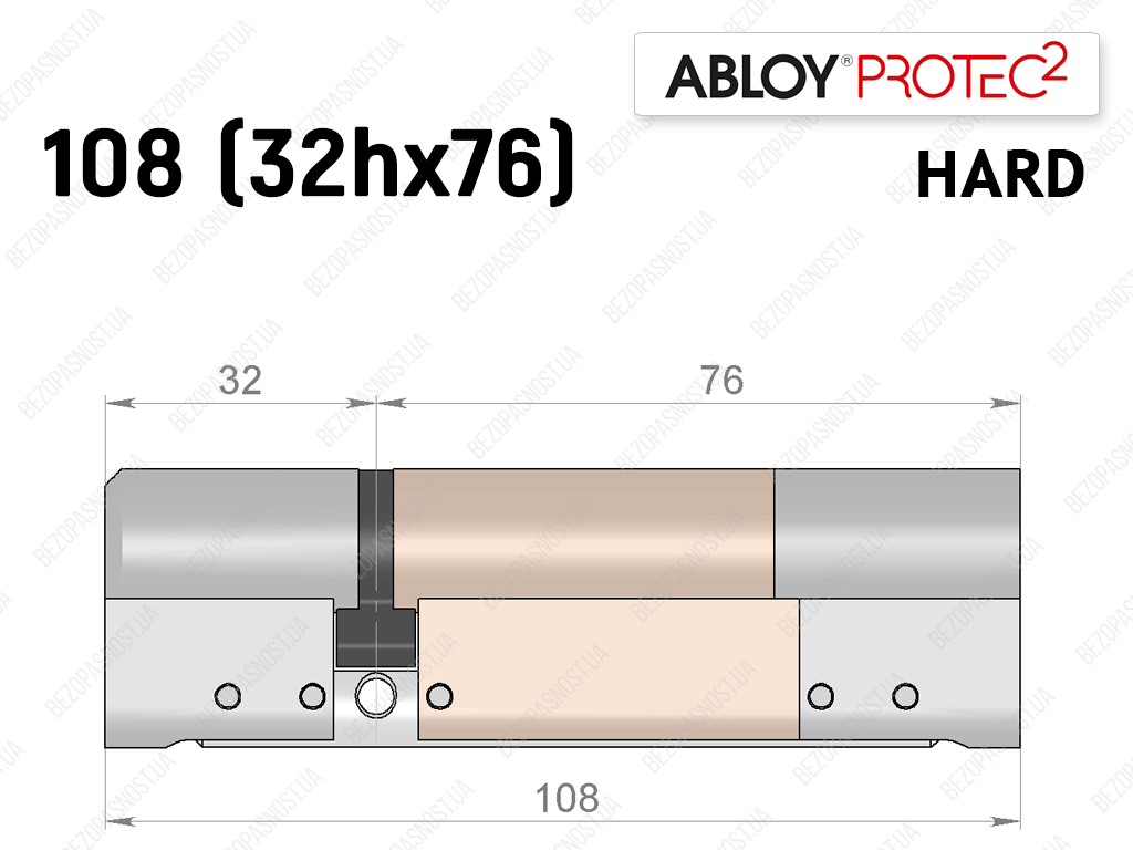 Цилиндр ABLOY PROTEC-2 HARD 108 мм (32Hx76), ключ-ключ