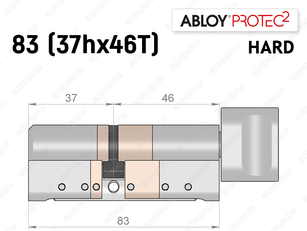 Циліндр ABLOY PROTEC-2 HARD 83 мм (37Hx46T), з тумблером
