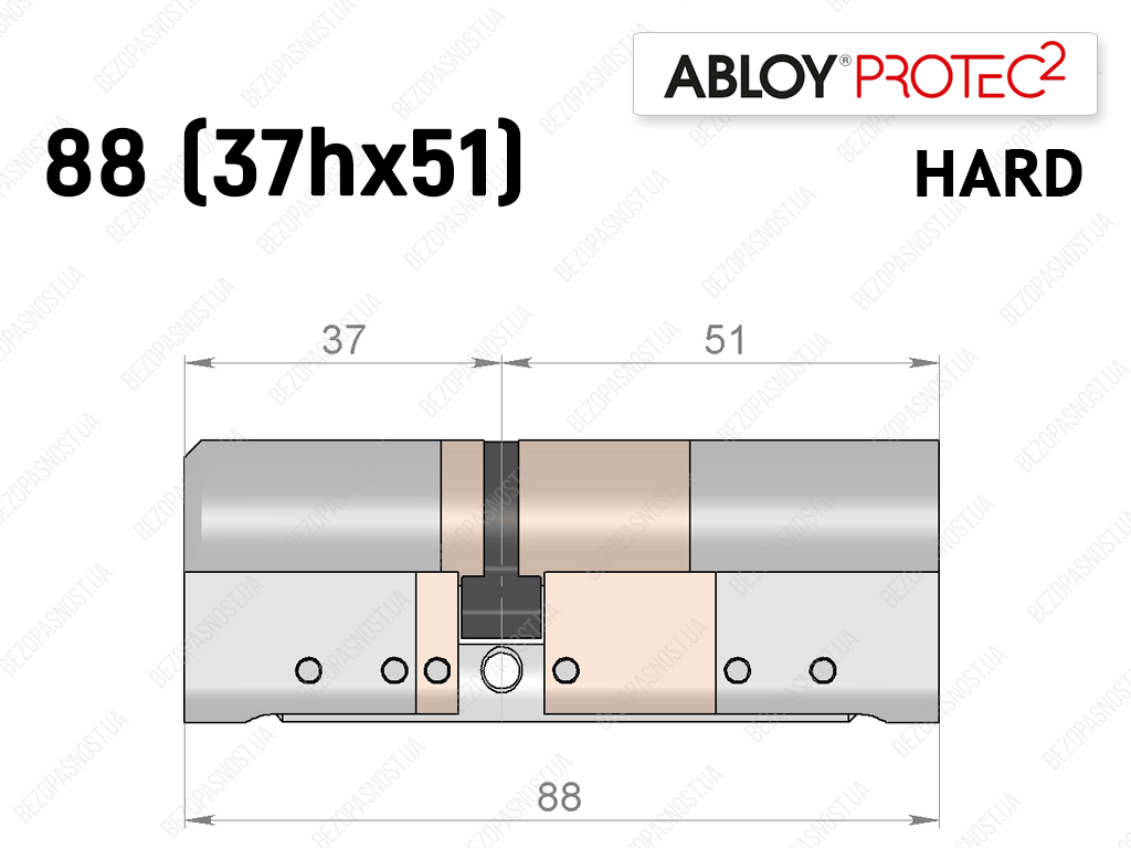 Цилиндр ABLOY PROTEC-2 HARD 88 мм (37Hx51), ключ-ключ