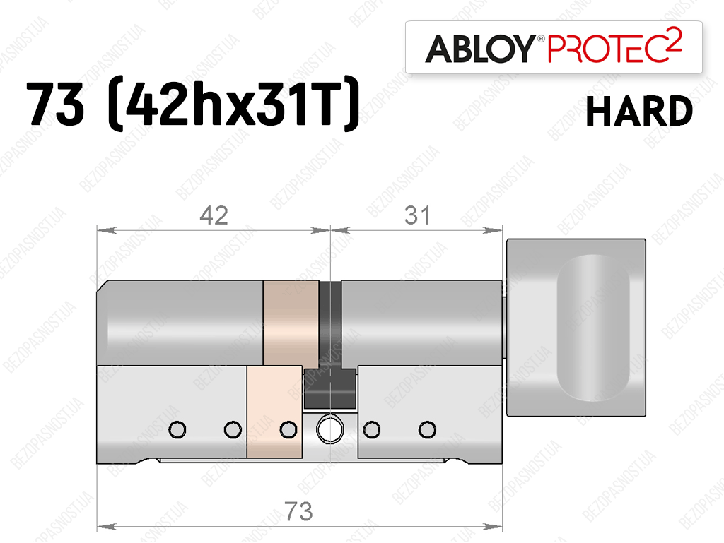 Циліндр ABLOY PROTEC-2 HARD 73 мм (42Hx31T), з тумблером