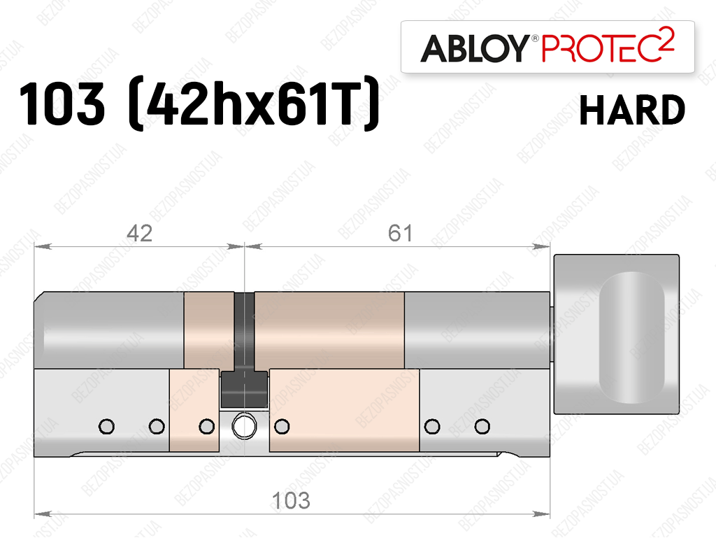 Цилиндр ABLOY PROTEC-2 HARD 103 мм (42Hx61T), с тумблером