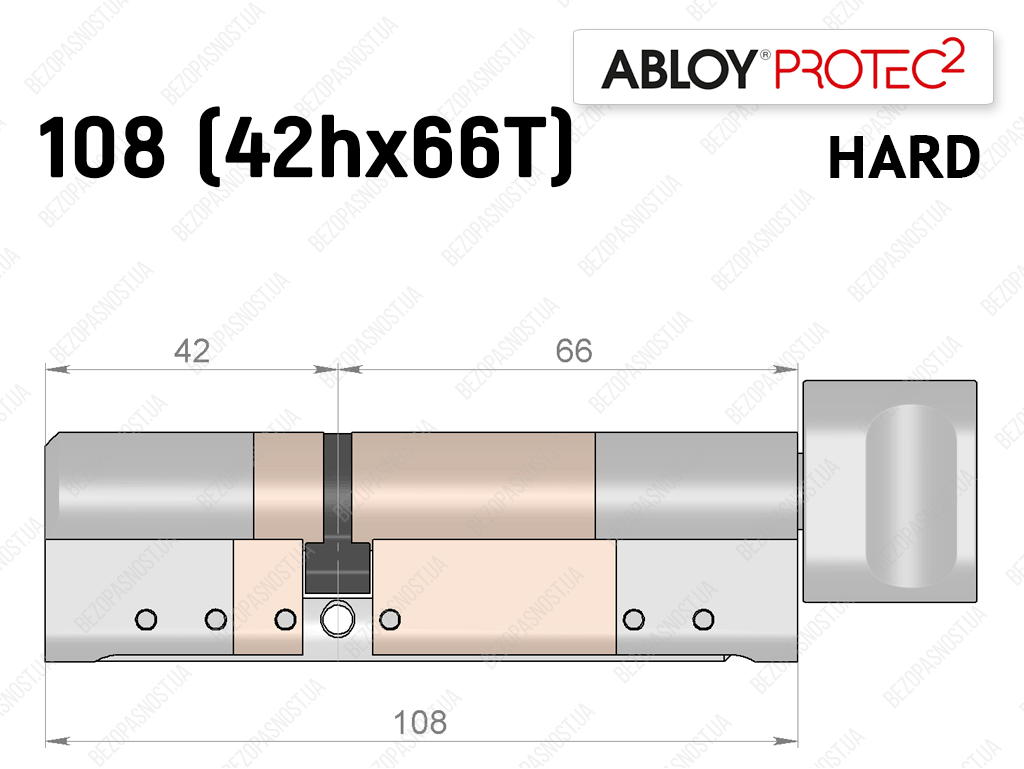 Цилиндр ABLOY PROTEC-2 HARD 108 мм (42Hx66T), с тумблером