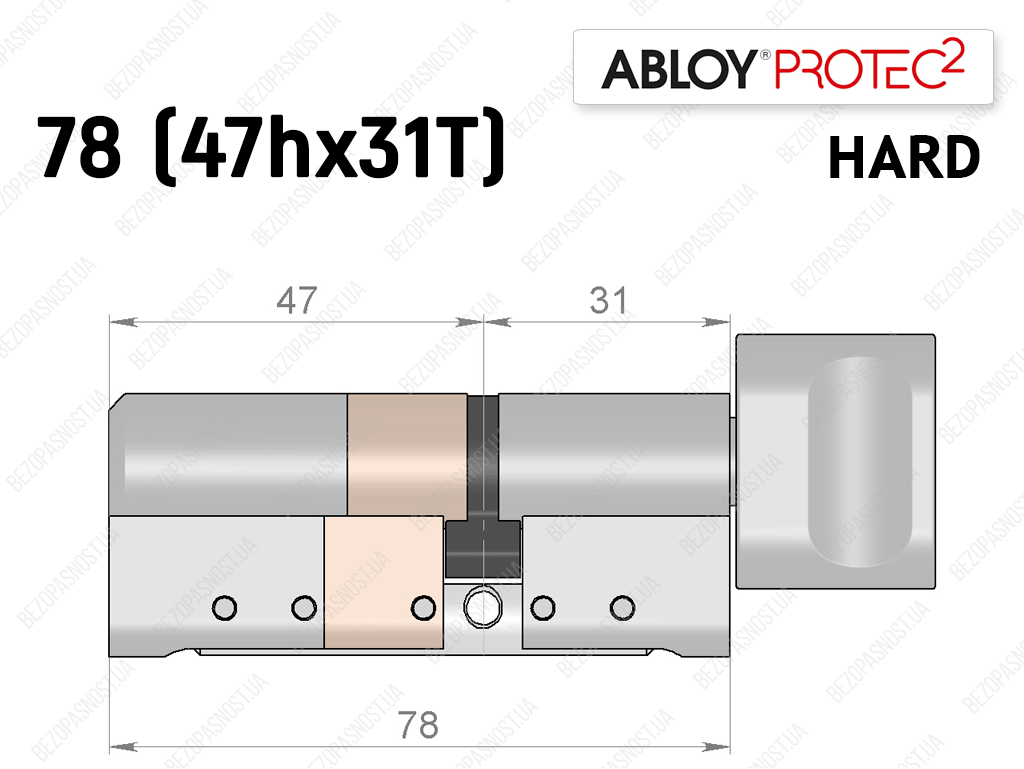 Цилиндр ABLOY PROTEC-2 HARD 78 мм (47Hx31T), с тумблером