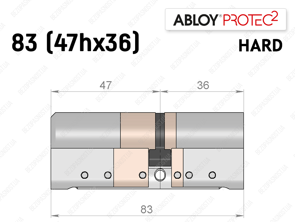 Цилиндр ABLOY PROTEC-2 HARD 83 мм (47Hx36), ключ-ключ