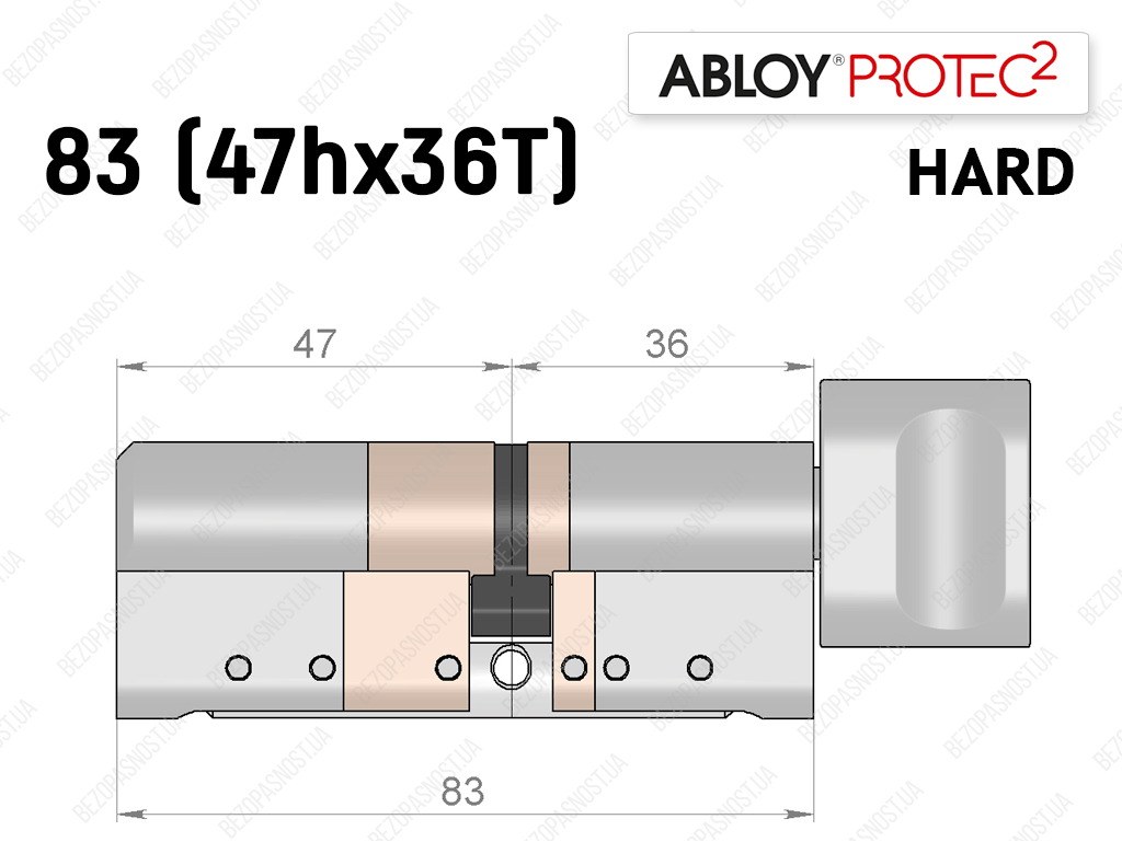 Цилиндр ABLOY PROTEC-2 HARD 83 мм (47Hx36T), с тумблером
