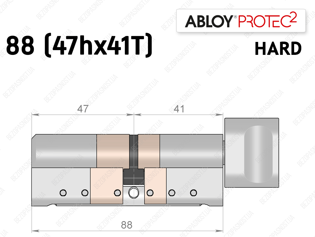 Цилиндр ABLOY PROTEC-2 HARD 88 мм (47Hx41T), с тумблером