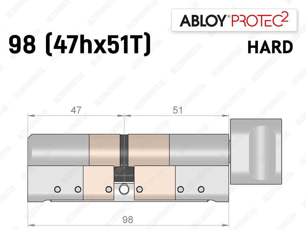 Цилиндр ABLOY PROTEC-2 HARD 98 мм (47Hx51T), с тумблером
