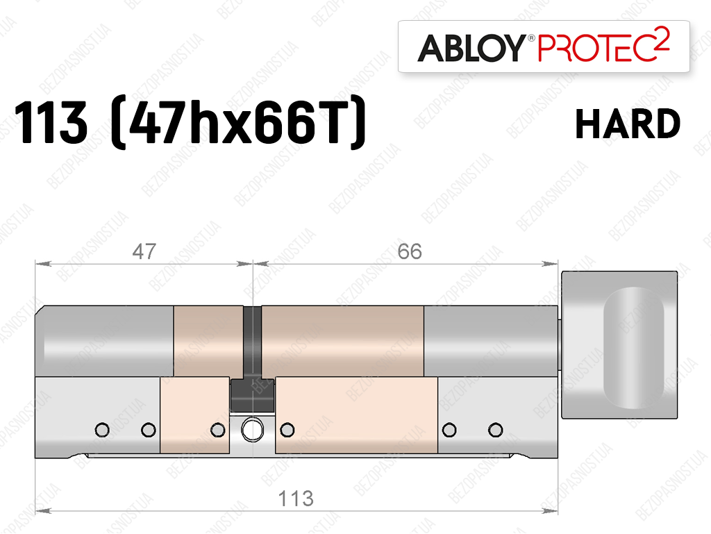 Цилиндр ABLOY PROTEC-2 HARD 113 мм (47Hx66T), с тумблером