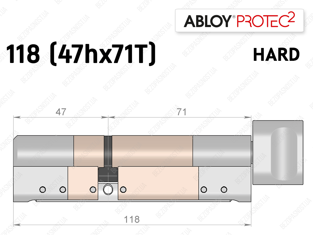 Цилиндр ABLOY PROTEC-2 HARD 118 мм (47Hx71T), с тумблером