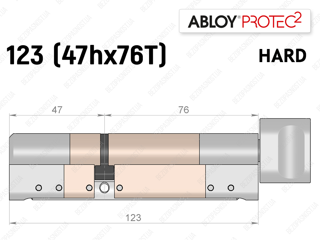 Цилиндр ABLOY PROTEC-2 HARD 123 мм (47Hx76T), с тумблером