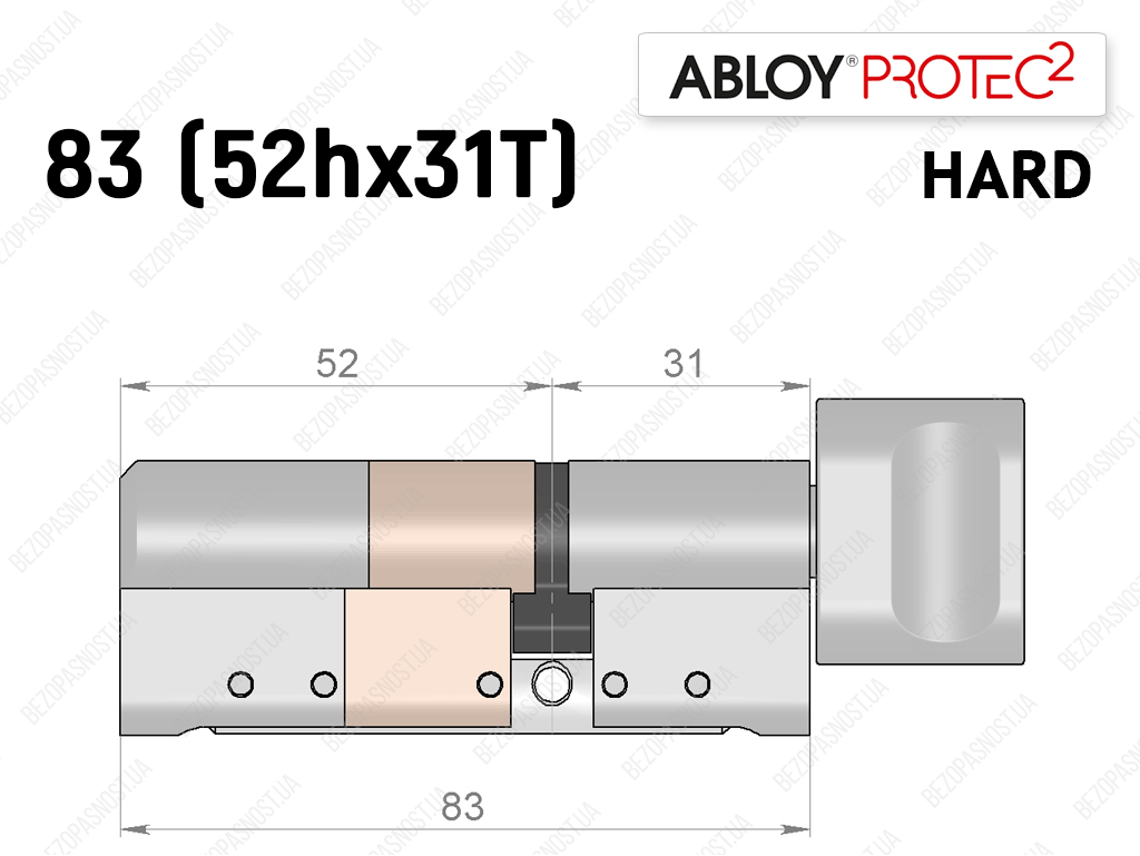 Цилиндр ABLOY PROTEC-2 HARD 83 мм (52Hx31T), с тумблером
