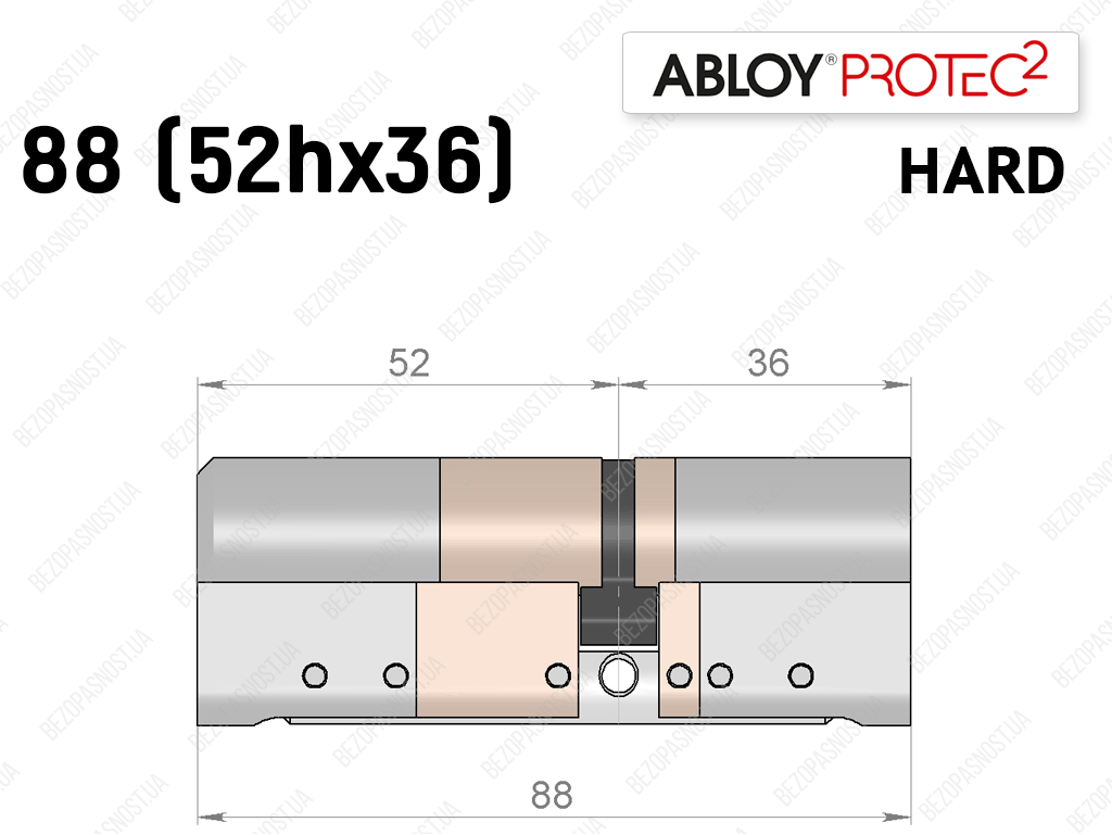Цилиндр ABLOY PROTEC-2 HARD 88 мм (52Hx36), ключ-ключ