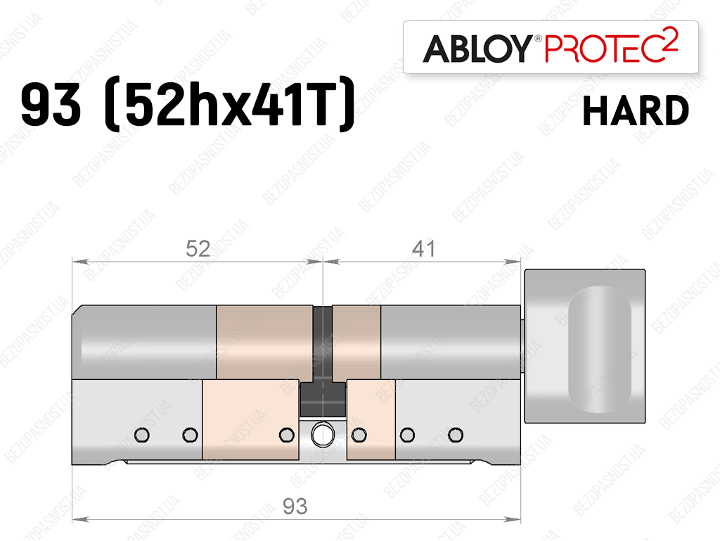Цилиндр ABLOY PROTEC-2 HARD 93 мм (52Hx41T), с тумблером