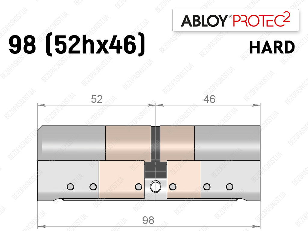 Цилиндр ABLOY PROTEC-2 HARD 98 мм (52Hx46), ключ-ключ