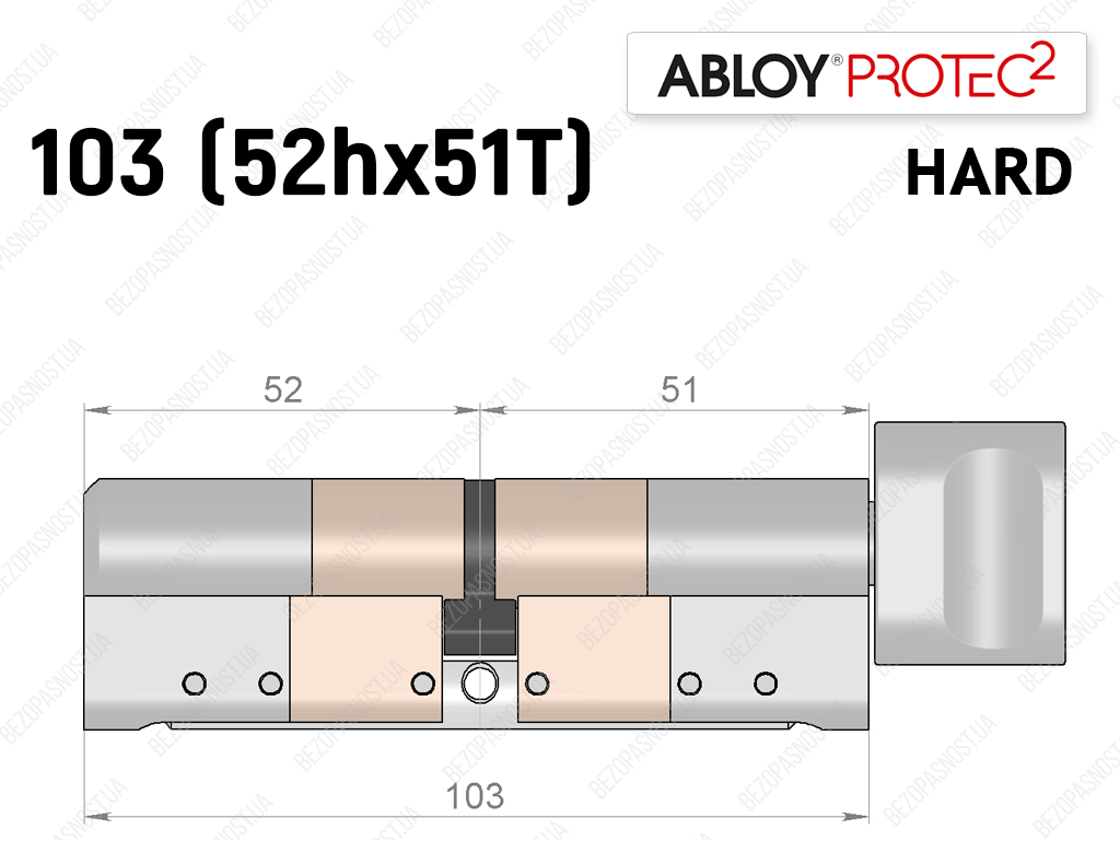 Цилиндр ABLOY PROTEC-2 HARD 103 мм (52Hx51T), с тумблером
