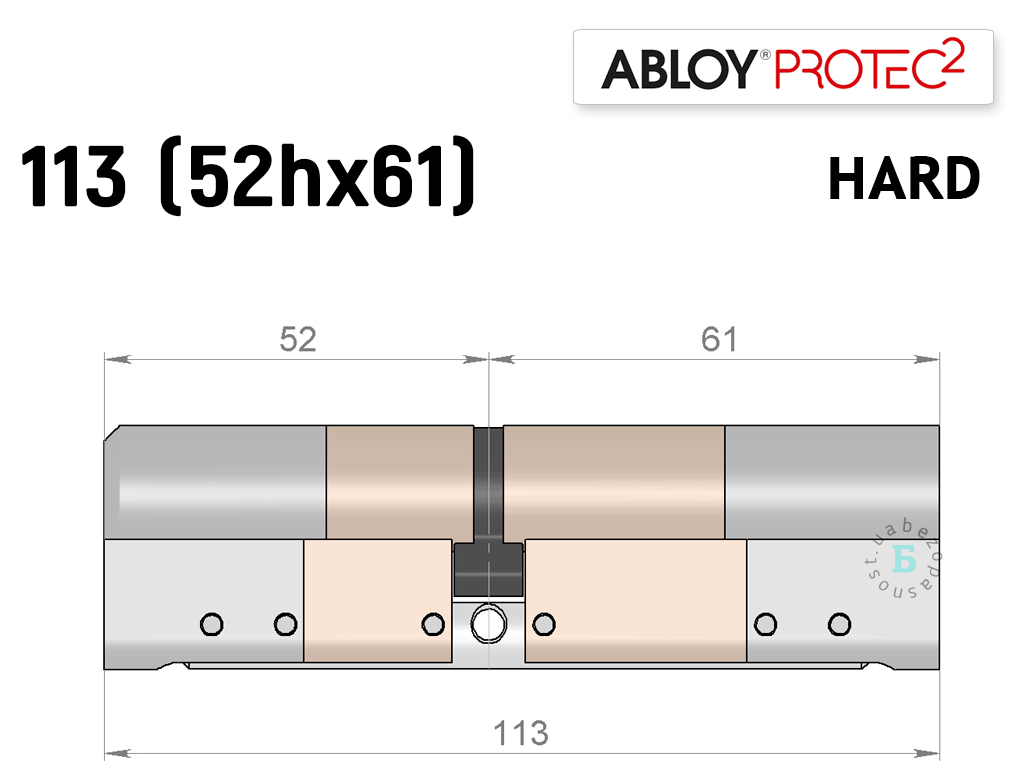 Цилиндр ABLOY PROTEC-2 HARD 113 мм (52Hx61), ключ-ключ